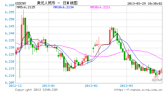 新浪财经讯 3月29日上午消息,美元兑人民币询价交易今日开盘报6.2095,这标志着人民币即期汇率刷新3月25日创下的汇改以来高点6.2096。今早公布的人民币中间价为6.2689,创下10个月新高,距离5月2日创下的历史高点只差19点。